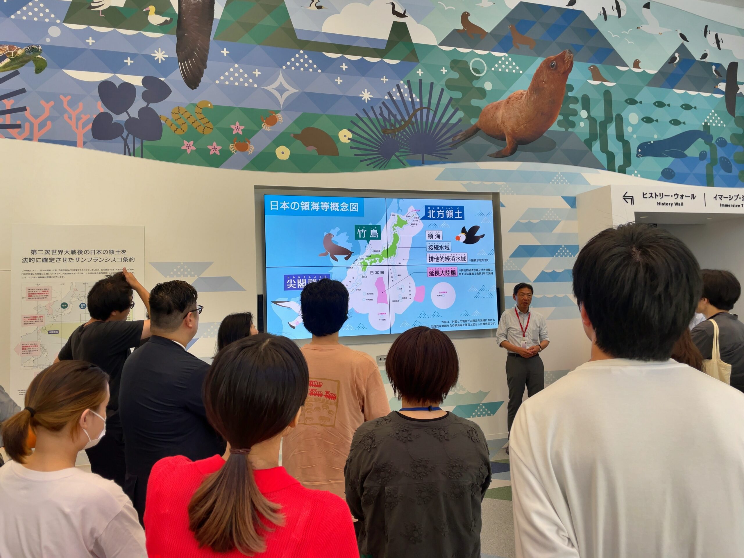 2025年4月のリニューアルオープンで新たに追加されたのが、「イマーシブ・シアター」をはじめとする大型の映像を使用した展示コーナー。北方領土・竹島・尖閣諸島の自然の美しさや豊かさを訴求するのに一役買っていた一方で、スペース確保のためにいくつかの展示を取り下げたそうです。取り下げられたものの中には、諸外国から各領土問題を見たときの「各国の主張」に関する展示が含まれていたと聞きます。